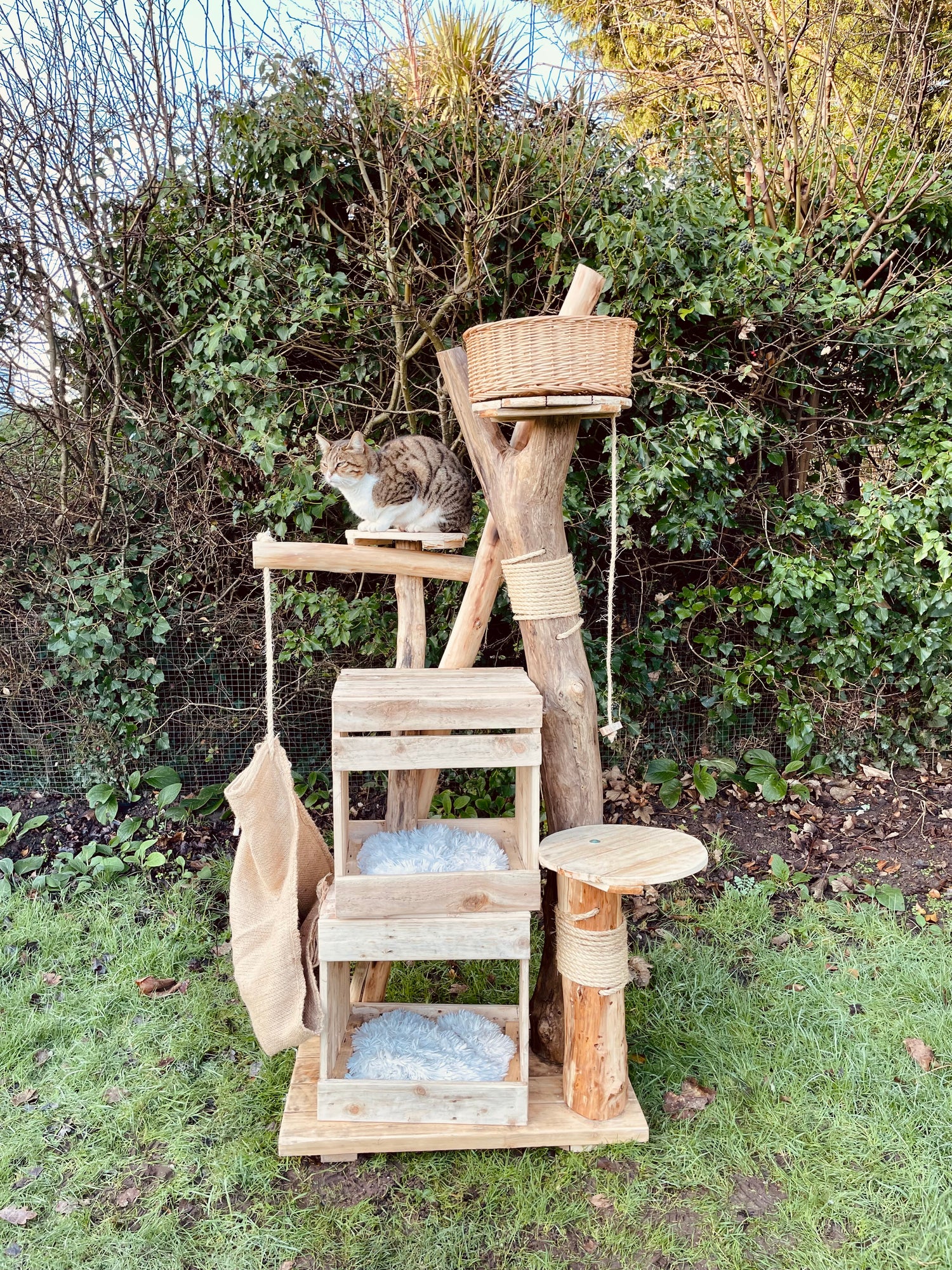 This handcrafted solid wood cat tree captures the spirit of the outdoors, turning your home into a wild playground where your feline can climb, perch and rest in total comfort.