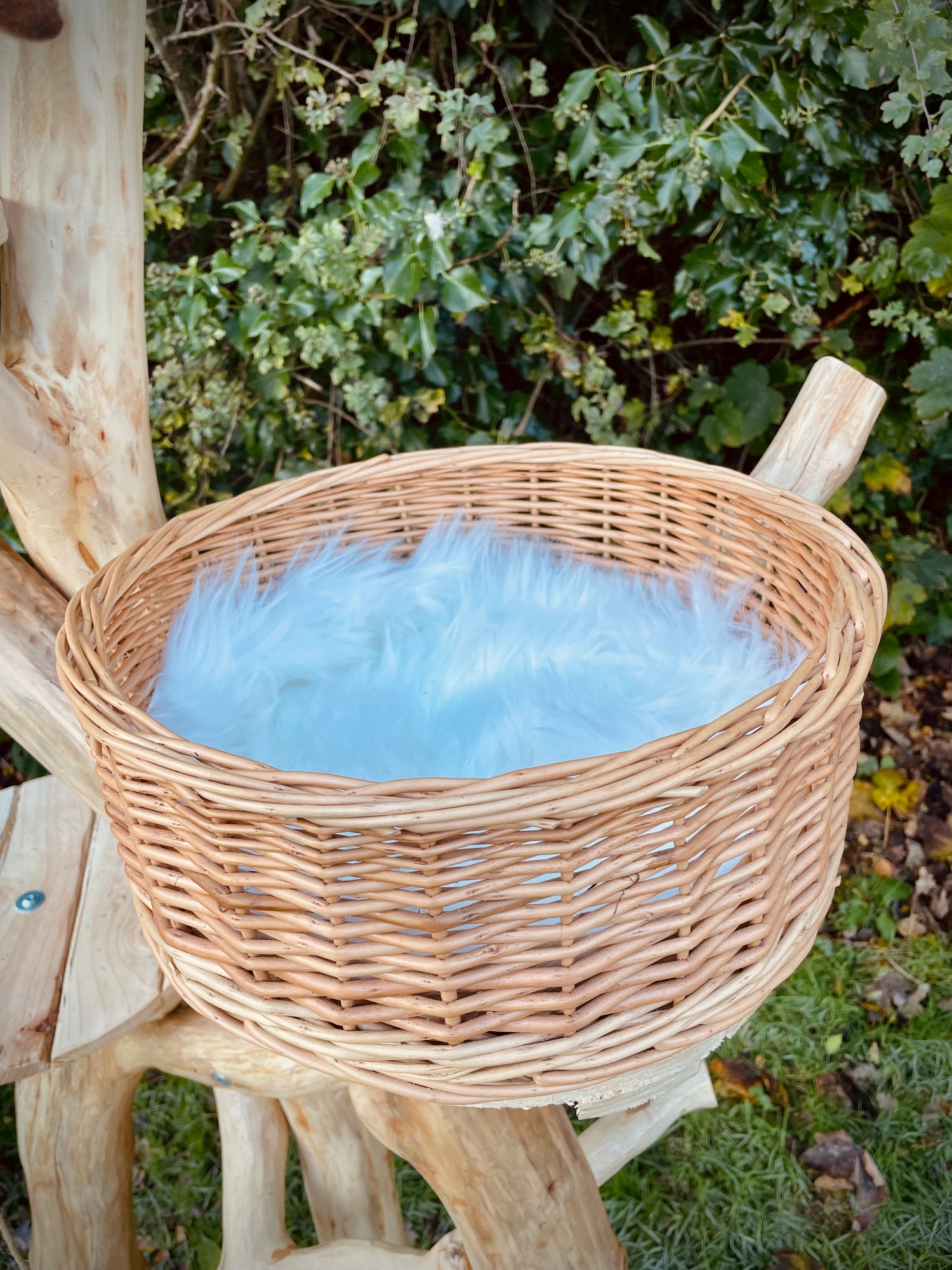 🛏️ Ultimate Comfort – Includes two soft cushioned wicker baskets and wooden platforms for naps.